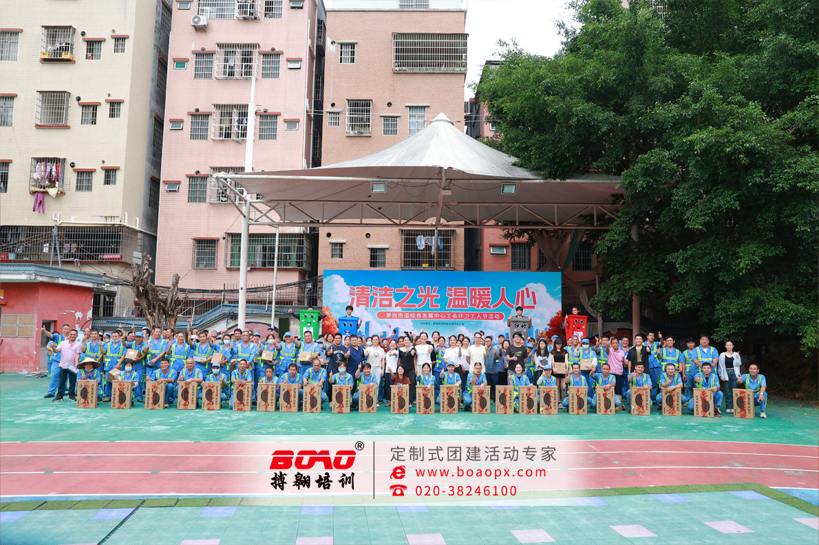在城市的大街小巷,总有一群深蓝色身影默默守护着环境的整洁,他们就是可敬可爱的环卫工人。近日,搏翱广州拓展团建携手萝岗街道综合发展中心,火热开启环卫工人趣味运动会,用一场欢乐满满的团建,向城市美容师们致敬!作为街道服务群众、推动区域发展的重要平台,萝岗街道综合发展中心承担着统筹社区服务、增进民生福祉、助力街道各项事业高质量发展的重任。中心始终心系一线劳动者,此次联合搏翱广州拓展团建策划趣味运动会,正是为了让平日里辛勤劳作的环卫工人卸下疲惫,在欢声笑语中感受关怀与温暖。