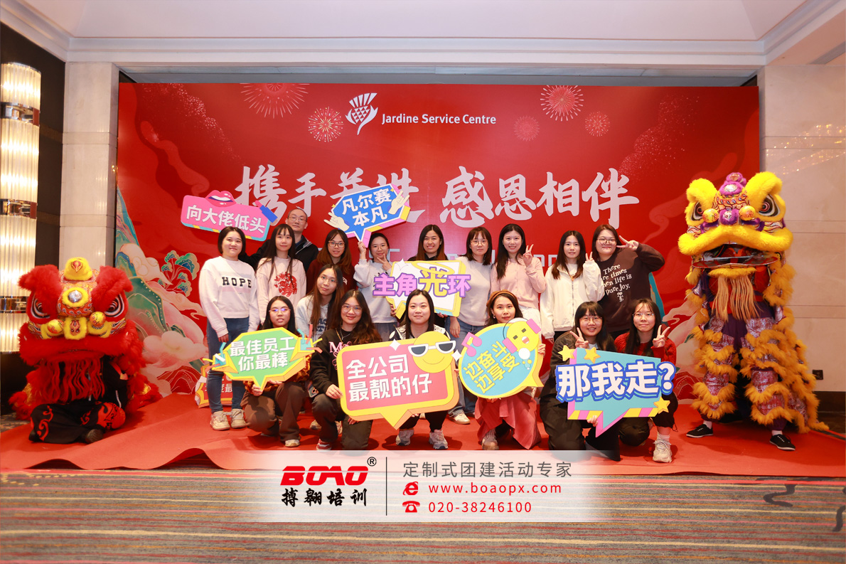 作为本次年会的策划与组织者,搏翱广州拓展团建深感荣幸能与怡和集团携手共创这段美好回忆。搏翱团建始终相信,卓越的团队是企业最坚实的基石,而富有创意的文化活动正是激发团队潜能、点亮组织活力的火种。 在此,搏翱团建衷心祝愿怡和集团在新的一年里,事业蓬勃,蒸蒸日上;团队凝心聚力,再创辉煌!愿此次年会的欢笑与温暖,成为持续前行的动力,期待未来继续携手,共赴更加广阔绚烂的商海征途!