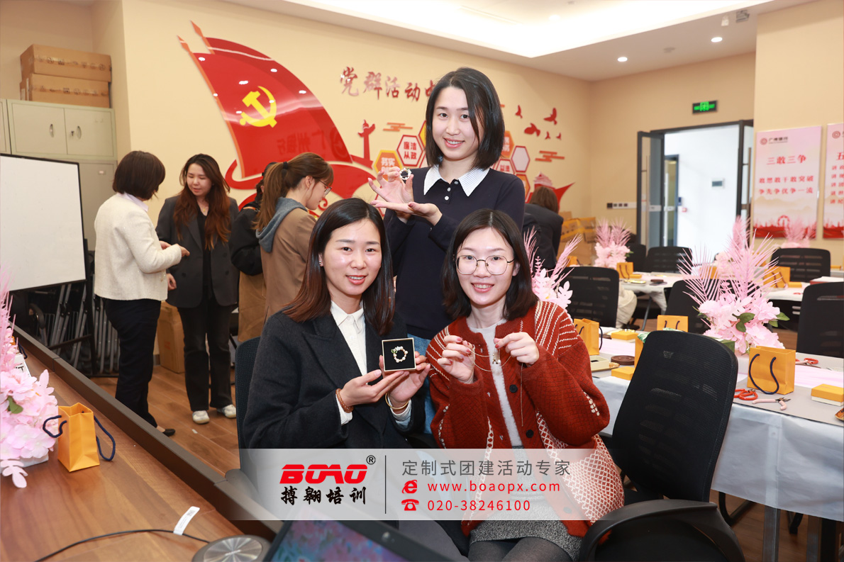 活动在大家佩戴或展示着自己的作品、互相赞美与合影的欢快气氛中圆满结束。每一件饰品都闪烁着独特的光芒,映照着创造者的巧思与团队的和谐。搏翱广州拓展培训公司也倍感荣幸,能为广州银行增城支行这样充满活力的团队,设计与陪伴这段融合创意与手作的静谧之旅。搏翱广州拓展培训公司谨向广州银行及增城支行致以最真诚的祝愿;愿事业发展如这手工饰品,历经精心雕琢,终成璀璨之作;愿在增城这片充满希望的热土上,金融服务能激发无限创意,编织美好未来,与客户和区域共同成长,闪耀更加夺目的光彩!